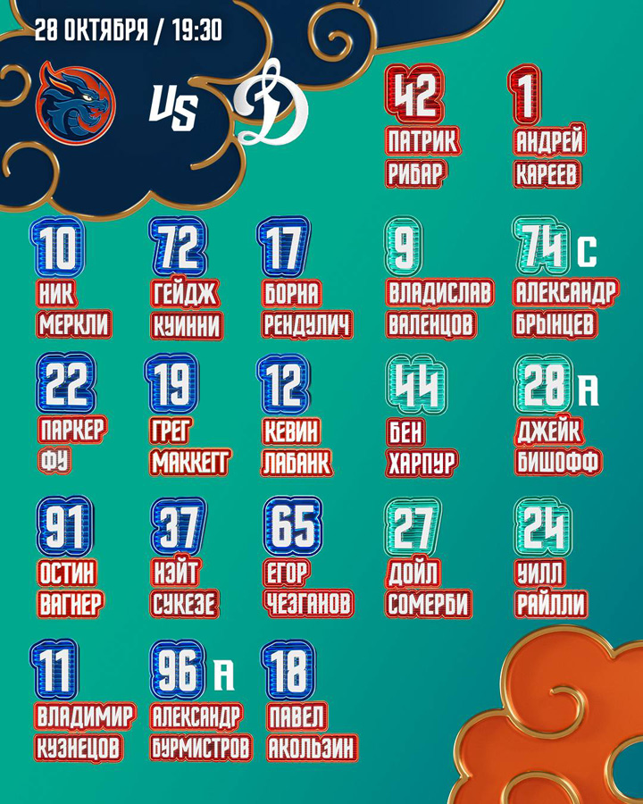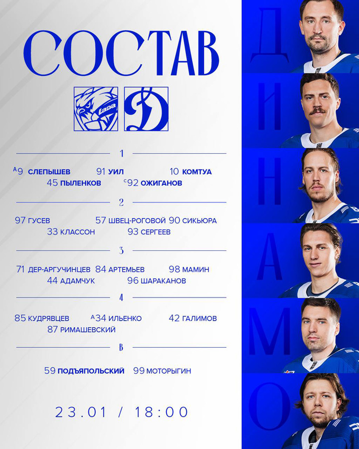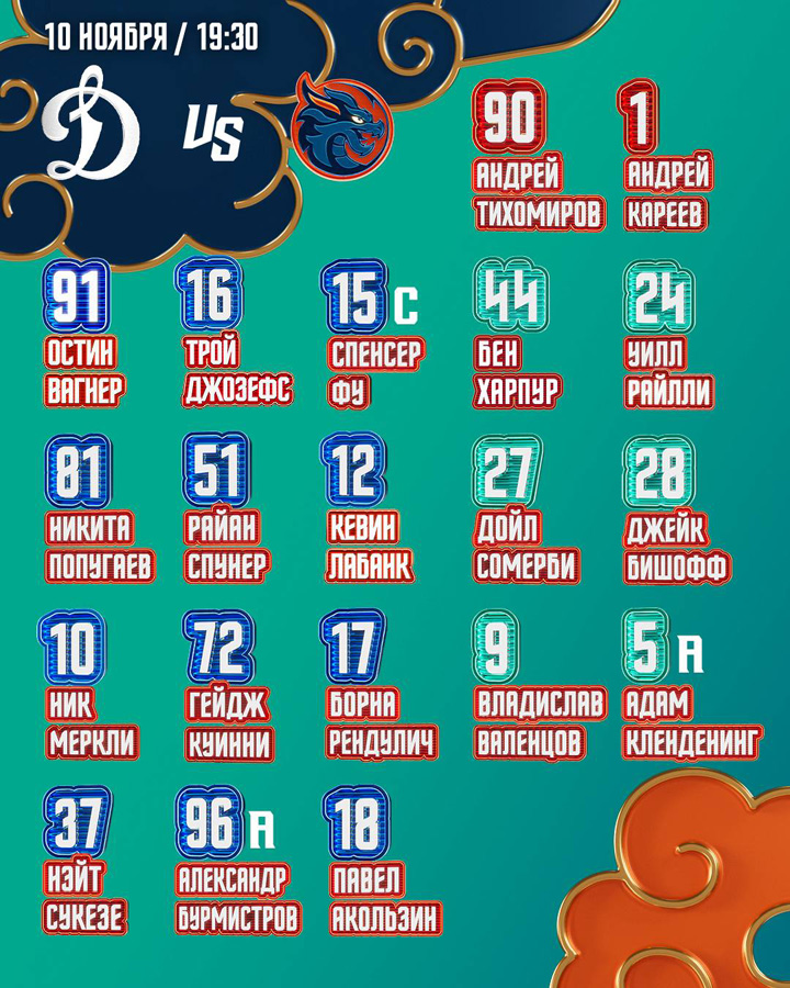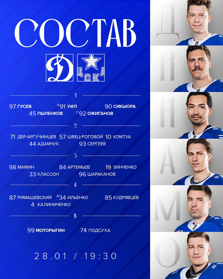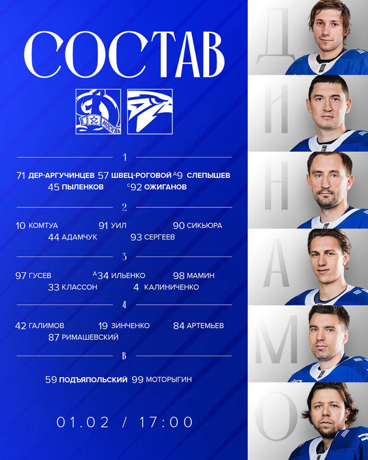 06.09.2025 В стартовой игре сезона с московским ЦСКА (2:6) в составе московского «Динамо» дебютировали защитник Фредрик Классон, а также нападающие Девин Броссо и Максим Мамин. Впервые на тренерском мостике оказались тренеры Ильнур Гизатуллин и Геннадий Столяров.