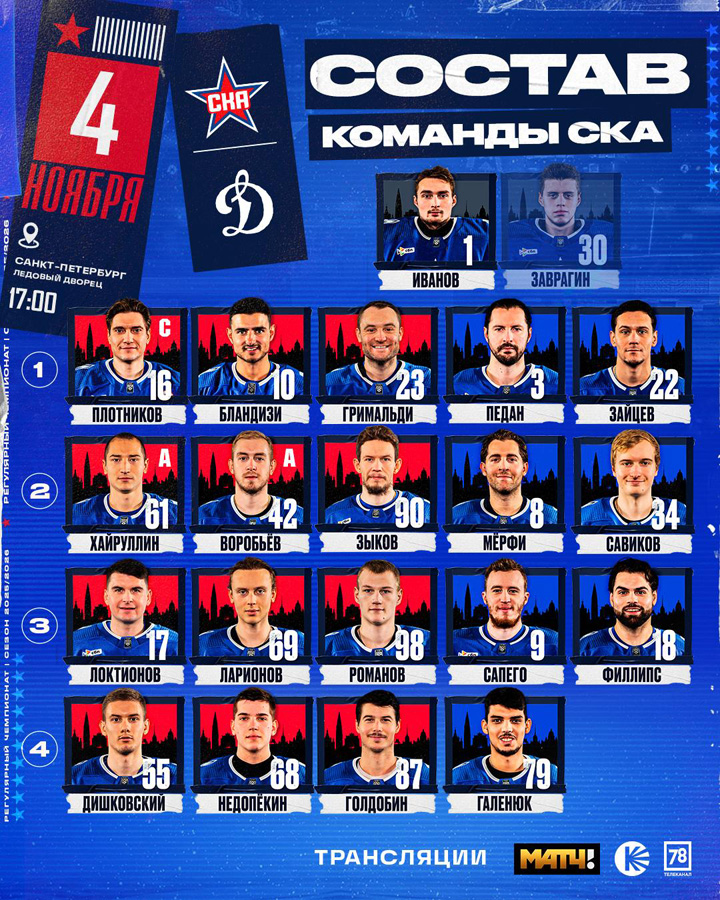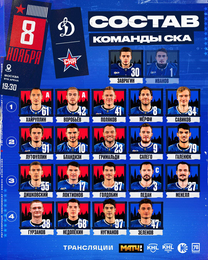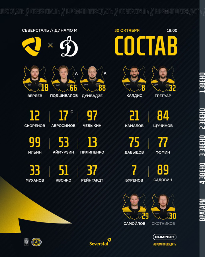 Олсон, Шестаков, Петухов – Комтуа (1, ПБ), Уил, Броссо22.09.2025