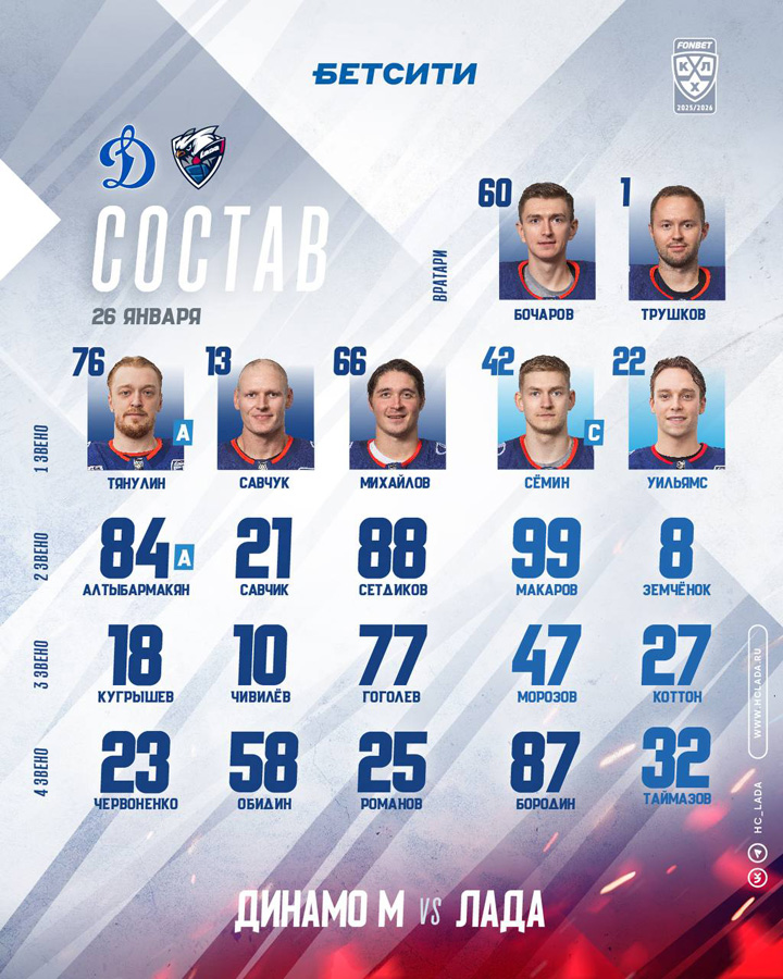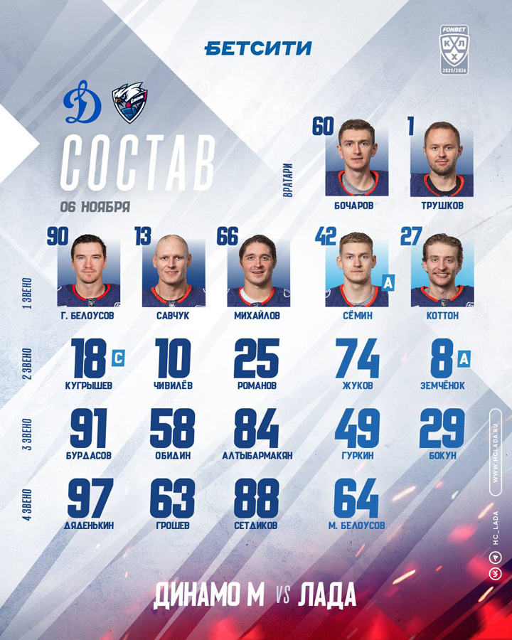 09.09.2025 В игре с ХК «Сочи» (2:3 Б) в составе московского «Динамо» дебютировал нападающий Даниил Прохоров.