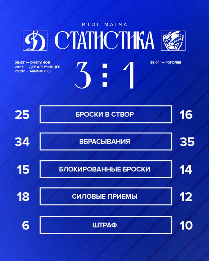 11.09.2025 В игре с магнитогорским «Металлургом» (2:1 Б) московское «Динамо» провело 500-й гостевой матч в регулярных первенствах КХЛ.