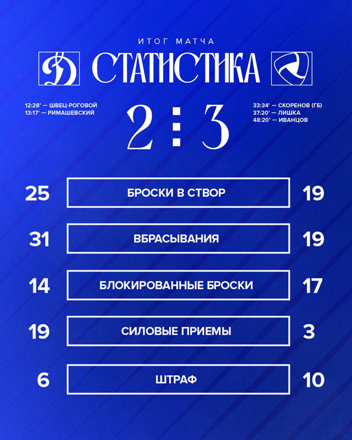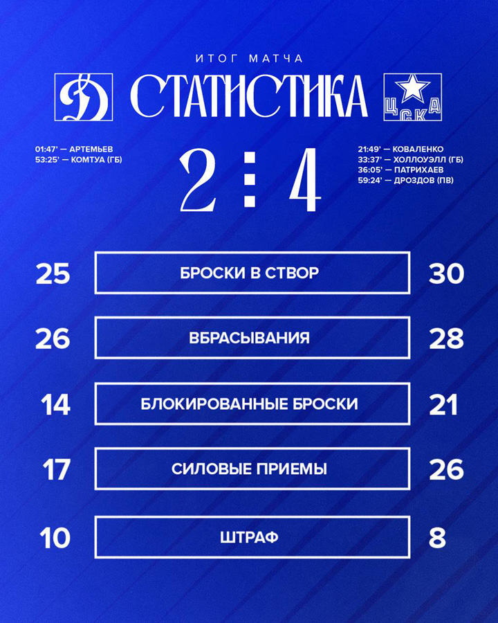 25.07.2025 Московское «Динамо» совершило обмен со «Спартаком». Бело-голубые получили вратаря Дмитрия Куликова, красно-белые получили нападающего Никиту Буруянова.