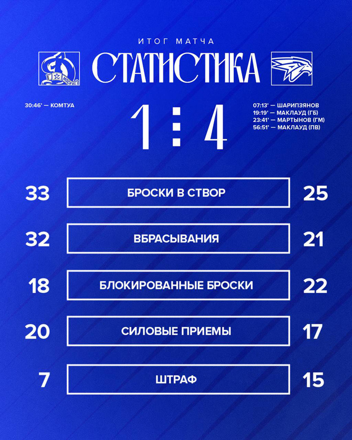 29.09.2025 В игре с нижнекамским «Нефтехимиком» (2:3) защитник Игорь Ожиганов сделал 50-ю результативную передачу за клуб.