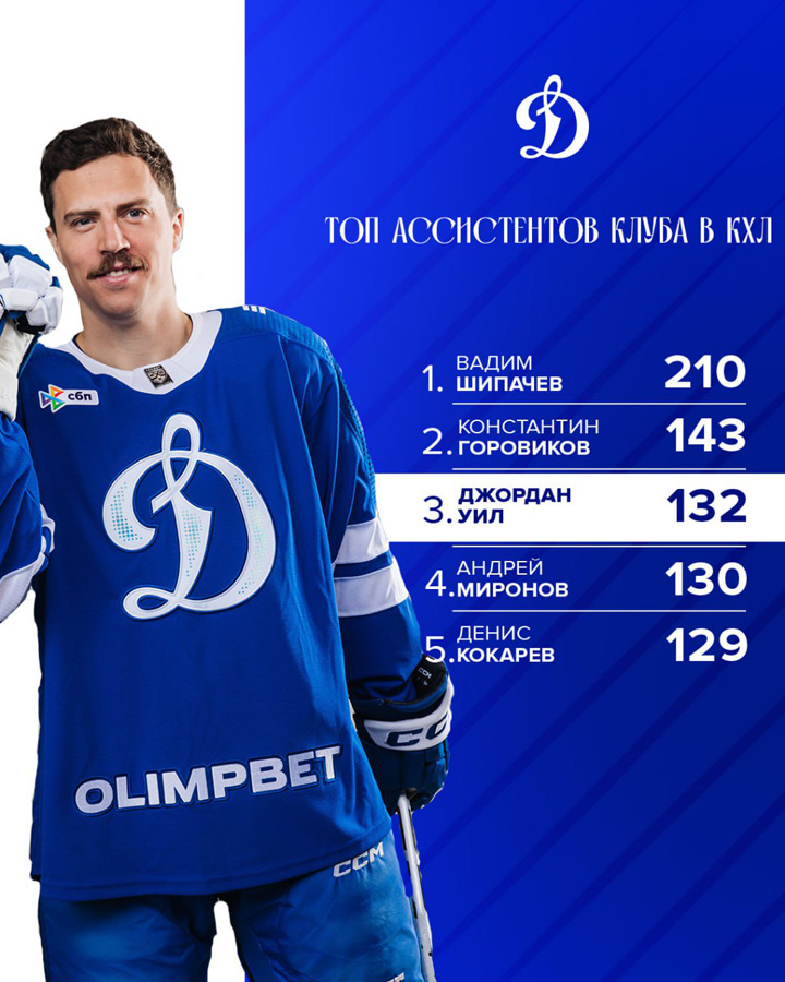 13.09.2025 В игре с омским «Авангардом» (4:7) нападающий Джордан Уил набрал 200-е очко за клуб. Канадский форвард стал вторым игроком в истории московского «Динамо», добравшимся до этой отметки в КХЛ.