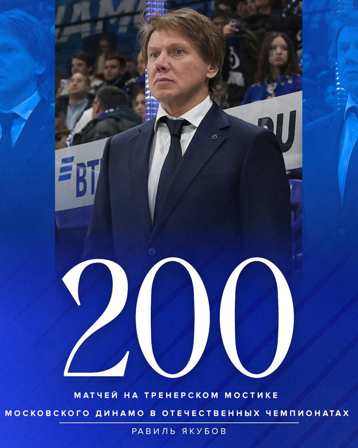 13.09.2025 В игре с омским «Авангардом» (4:7) главный тренер Алексей Кудашов провёл 300-й матч в клубе. Российский специалист стал пятым главным тренером в истории московского «Динамо», добравшимся до этой отметки.